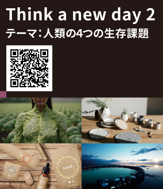 「現実とは異なる未来」といっても、そのかたちはさまざまです。現実に起こりそうな未来もあれば、現時点では物理的に実現不可能に思えるような未来もあります。また、誰もがすぐに賛同したくなるユートピア的な未来もあれば、鋭い批評性を持ち、刺激的ではあるものの「こうはなりたくない」と感じさせるような未来もあります。『Think a new day』では、単なる理想論や社会批評としての未来ではなく、たとえ批評的な要素を含んでいても、未来を描いた自分たち自身が「こうありたい」と思える未来像を目指しています。